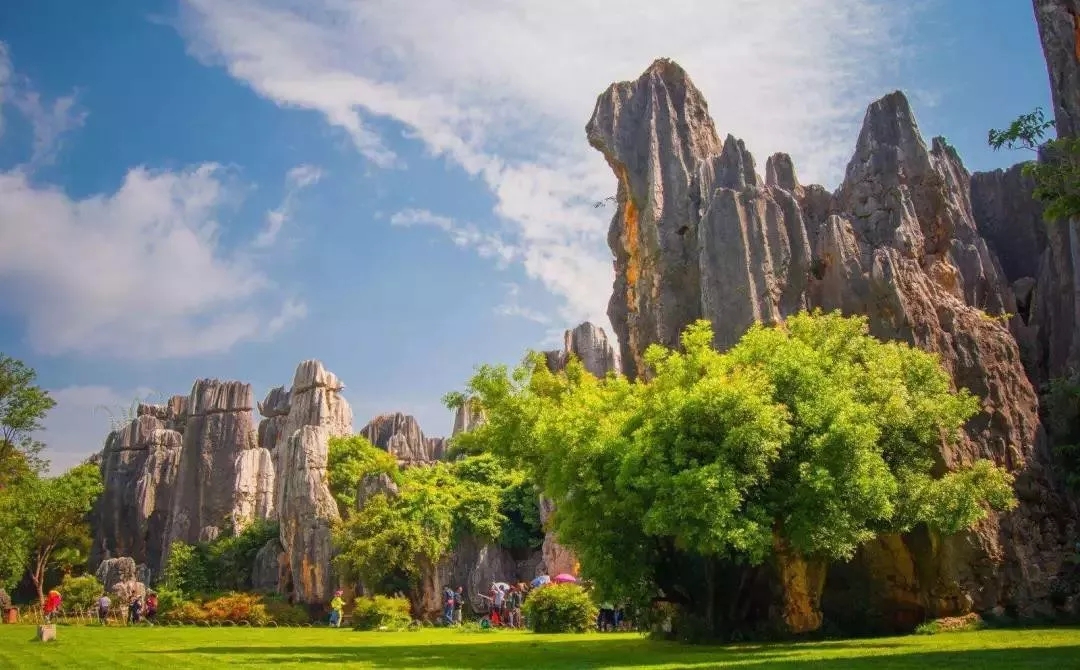 早餐后乘车前往石林(80公里,车程约1.5小时左右),抵达后畅游5A级风景区天下第一奇观多姿多彩的喀斯特地貌、世界自然遗产—【石林】(景区内电瓶车25元/人已含),品味“群峰壁立,千嶂叠翠的壮美景观(游览时间为2小时左右)。石林由密集的石峰组成,有如一片石盆地。这里的石林直立突兀,线条顺畅,并呈淡淡的青灰色,最高大的独立岩柱高度超过40米。其中有“莲花峰”、“剑峰池”、“千钧一发”、“极狭通人”、 “象距石台”、“幽兰深谷”、“凤凰梳翅”等典型景点,最著名的当数龙云题词“石林”之处的“石林胜境”,而“望峰亭”为欣赏“林海”的最佳处。