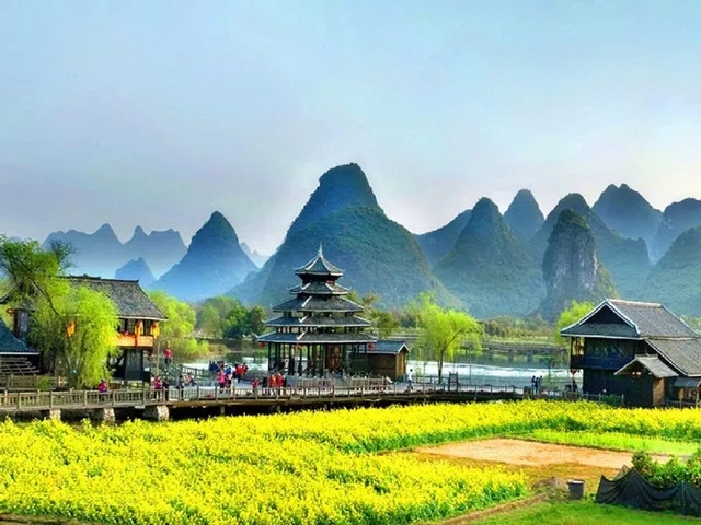 早餐后游览体现了桂林的历史文脉。游览原汁原味、原生态、具有浓郁广西少数民族风情的【经典·刘三姐大观园】(约70分),以歌会友、以歌传情、以歌为媒,体验与美丽的刘三姐对歌比试,被三姐相中的幸运游客还可得到抛出的绣球。