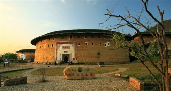 11:40 游览“土楼之王”---承启楼,位于福建省高头乡高北村,据传从明崇祯年间破土奠基,至清康熙年间竣工,历世3代,阅时半个世纪,其规模巨大,造型奇特,古色古香,充满浓郁的乡土气息。“高四层,楼四ng 三圈一中心。外圈4层,高16.4米,每层设72个房间;第二圈二层,每层设40个房间;第三圈为单层,设32个房间,中心为祖堂,全楼共有400个房间,3个大门,2口水井,整个建筑占地面积5376.17平方米。全楼住着60余户,400余人。承启楼以它高大、厚重、粗犷、雄伟的建筑风格和庭园院落端庄丽脱的造型艺术,融与如诗的山乡神韵,让无数参观者叹为观止,承启楼,博士楼......等。后自由活动。