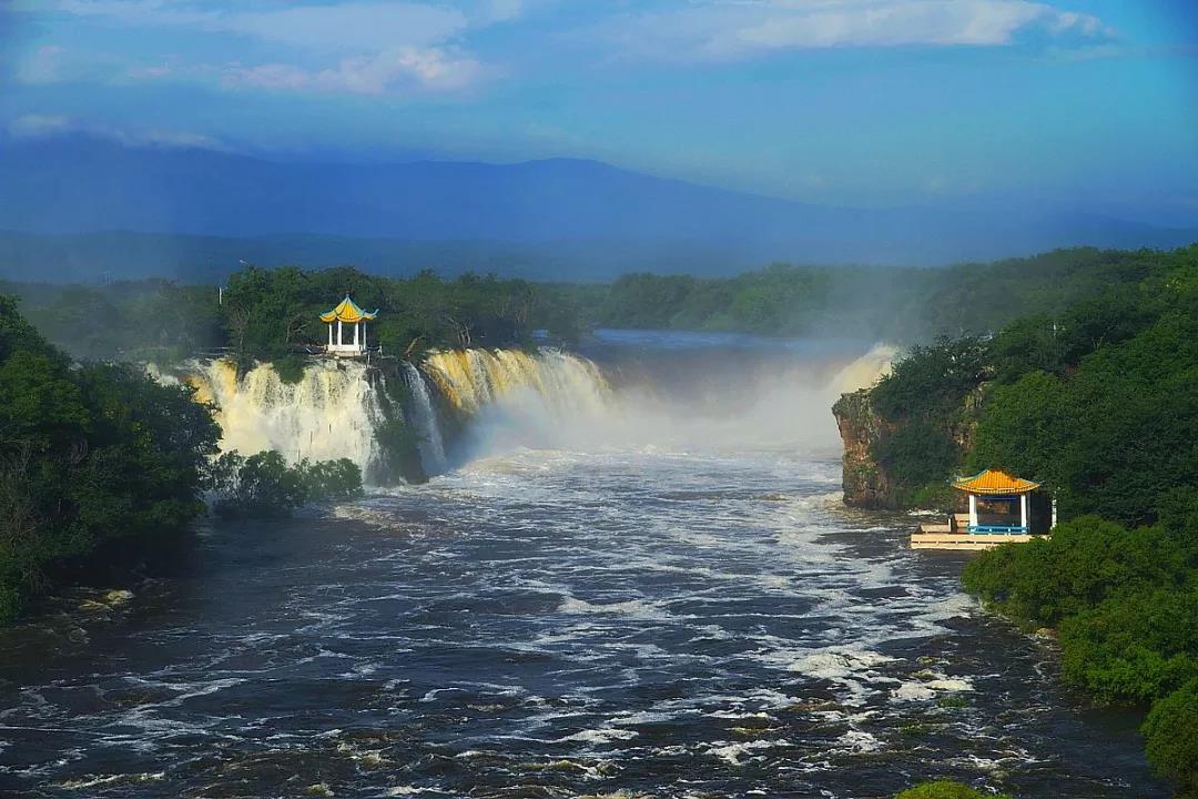 10:30乘环保车前往瀑布停车场,游览中国三大瀑布之一的吊水楼瀑布景区,瀑布幅宽约70余米,落差 20 米,它下边的水潭名“黑龙潭”深 60 米。每逢雨季或汛期,水声如雷,激流呼啸飞泻,水石相击,白流滔滔,水雾蒸腾出缤纷的彩虹。